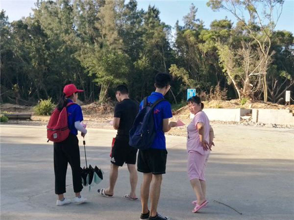 7月13日,beat365官方网站赴石狮市永宁古镇实践队前往宝盖山风景区开展万寿塔的宣传活动。