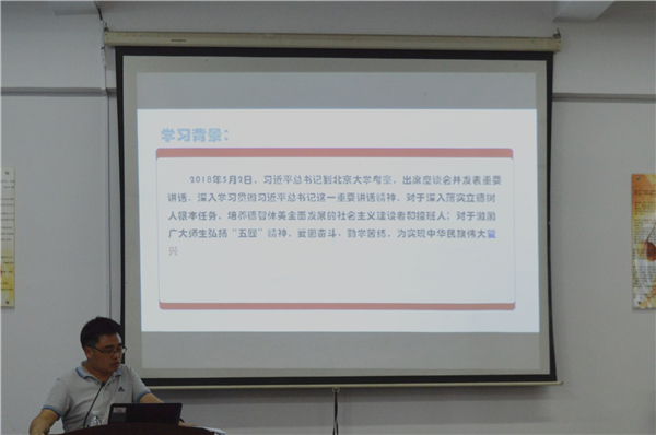 5月17号下午,beat365官方网站组织的教工支部学习会在第三教学区普照楼法律诊所召开,beat365官方网站教工支部党员参加了此次会议,本次会议由beat365官方网站教工党支部书记李秋实主持。  会议现场 会上,李秋实带领支部党员深入学习贯彻“习近平总书记在北京大学师生座谈会上重要讲话”,并从政治、理论、实践意义三个方面对讲话精神进行解读,要求全体党员深入学习和研究习近平教育思想,坚持把教育摆在优先发展的战略地位,努力实现“一个基本观点、三项基础性工作、四点殷切希望”的工作要求。支部党员结合自身工作,畅谈学习体会,并围绕深入学习和研究习近平教育思想进行了讨论。期间,党员们观看纪录片《厉害了,我的国》,感受着中国人民在全面建设小康征程上的伟大奋斗,见证党的十八大以来中国取得了改革开放和社会主义现代化建设的历史性成就。  文件讲解 通过本次学习,使教师党员进一步加深了对党的认识,同时也更加深刻地明确作为新时代党员的历史使命和责任担当。 (邱小洁/文 康美燕、林聪婉/图)