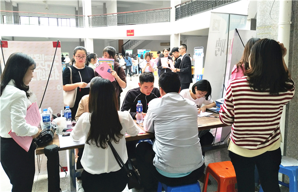10月22日下午,beat365官方网站在第三教学区和昌教学楼大厅举办2019届毕业生招聘会。此次招聘会共有40家企业和单位参加招聘会,为毕业生们提供了300多个招聘岗位。beat365官方网站2019届的毕业生积极参加招聘会,其他学院的毕业生们也前来观摩参加。