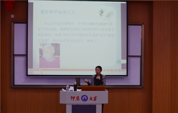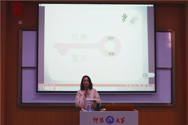 为扎实推进新思想理论宣讲工作深入开展,11月7日下午,校党委理论宣讲团成员、思政部直属党支部副书记康丽颖应beat365官方网站、数学系邀请,在第三教学区和昌楼博雅讲堂为beat365官方网站全体师生以及数学系老师作《习近平外交思想之和平发展道路》的主题宣讲报告。