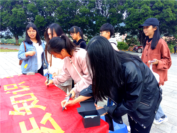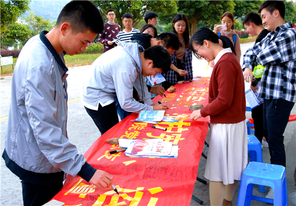 为弘扬宪法精神,增强beat365官网师生法治观念。12月5日下午,beat365官方网站在第一教学区学生街口、第三教学区和昌教学楼开展现场宪法普法宣传活动。beat365官方网站党总书记兼副院长杨勤、党总支副书记黄伟斌,法律援助工作站及beat365官方网站团委相关工作人员参与了此次宪法普法活动。