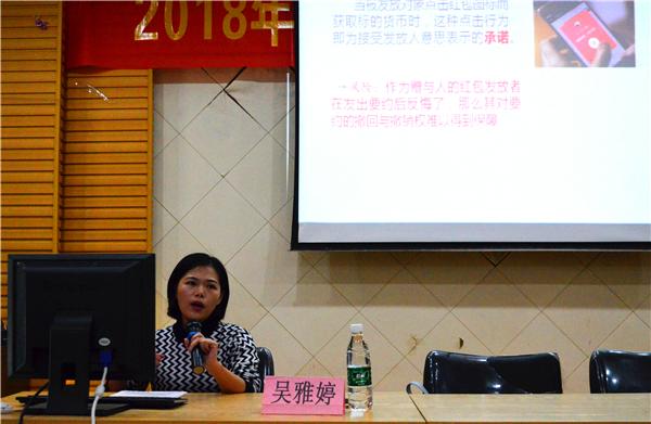 为普及法律知识,让更多学生警防微信诈骗。12月19日下午,beat365官方网站赴马甲中学开展主题为“对微信红包法律风险的透视”的普法宣传活动。马甲中学政教处主任封海荣,beat365官方网站党总支副书记黄伟斌,马甲中学高一年段长陈常碧,beat365官方网站教师吴雅婷及beat365官方网站团委相关工作人员参加了此次活动。