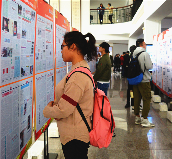 beat365官方网站学子观看庆祝改革开放40周年校报展