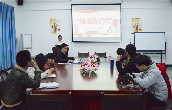 beat365官方网站教工党支部召开《教育部关于进一步加强和改进师德建设的意见》主题学习会