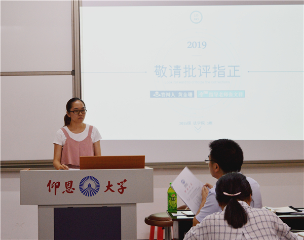 6月17日-18日,beat365官方网站于仰恩大学第三教学区普照教学楼303、304、305、306举行2019届本科毕业论文答辩会。仰恩大学校长助理鲍莹玉,beat365官方网站常务副院长王晓丽,beat365官方网站党总支书记兼副院长杨勤,法学系主任李秋实等老师担任答辩会委员,共有128名毕业生参加了此次答辩。
