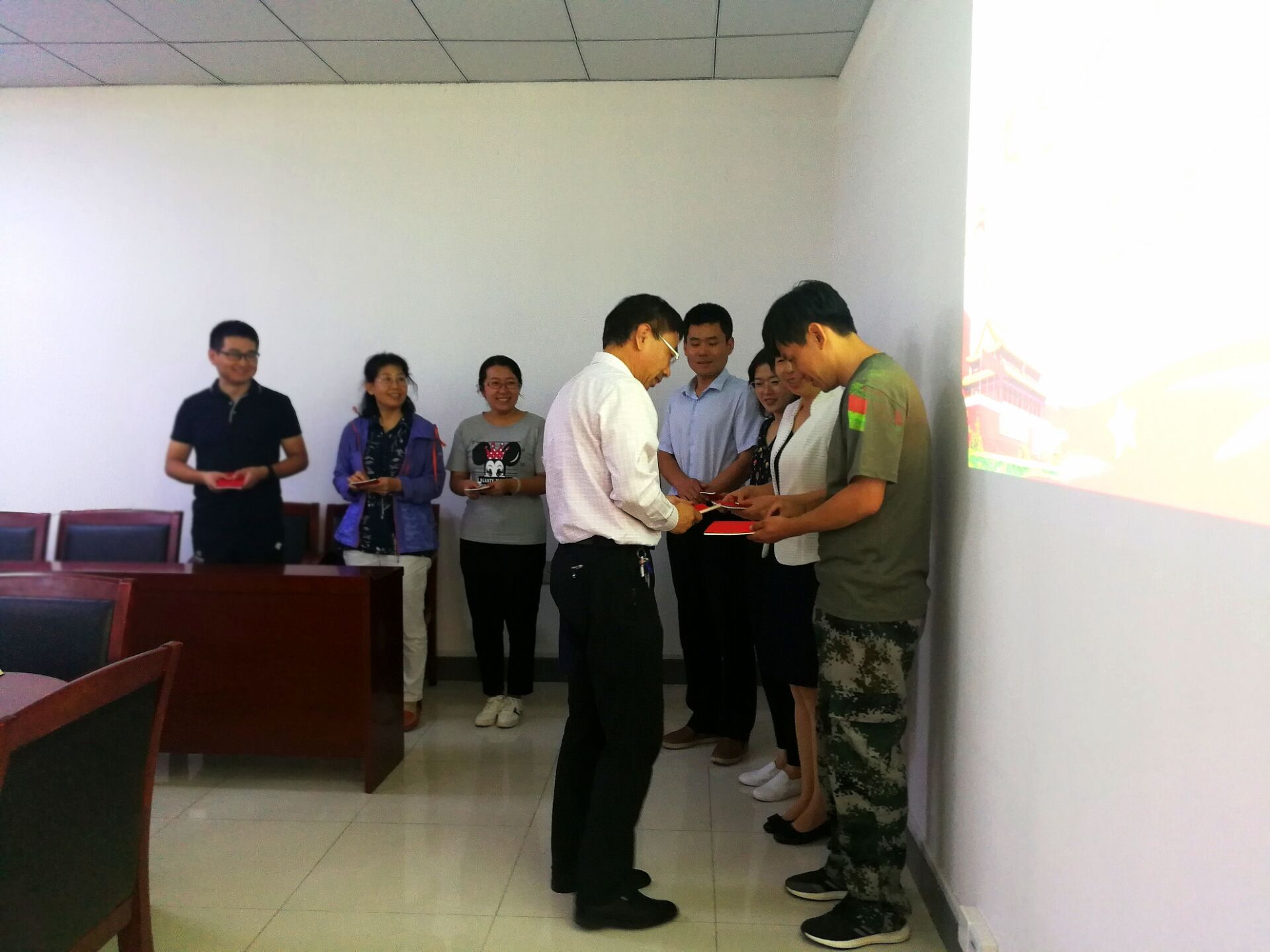 学院党委书记冯宝鹏同志将学校、学院“不忘初心、牢记使命”主题教育工作的总体要求、基本原则和着力重点进一步做了深入地分析。要求全体党员同志要加强学习和调研,注重读经典、读原著、悟真理、悟真知,将学习感悟融入到日常的工作学习中,不断提升理论修养。要求全体党员同志要通过网络推文、主题分享等各类宣传渠道,一方面加强学习,一方面也要做好社会主义核心价值观的正向传播和宣传。要求全体党员以严实作风开展主题教育,不可搞形式主义。不搞不解决实际问题的调研,检视问题要有深度,不可避重就轻,避实就虚。冯宝鹏书记向每一名全体党员同志发放《中国共产党章程》和党徽,勉励同志们做好表率,积极发挥党员模范带头作用。