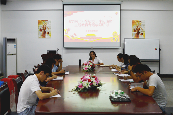 10月9日下午,beat365官方网站党总支组织全体教师党员以及教师入党积极分子围绕“践行初心使命”主题,在仰恩大学第三校区普照教学楼法律诊所召开“不忘初心、牢记使命”主题教育专题学习研讨会,会议由beat365官方网站党总支书记兼副院长杨勤主持。