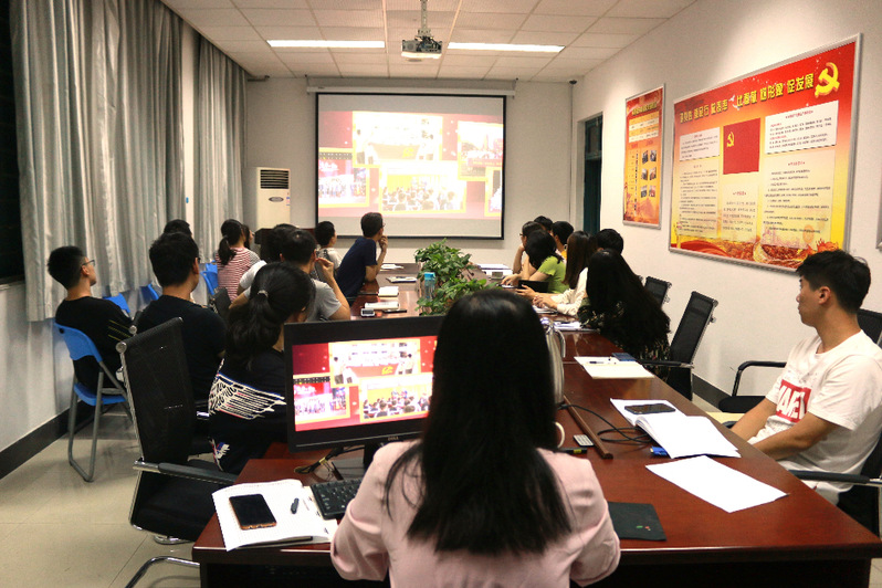 支部成员观看“不忘初心、牢记使命”视频(摄影:闫学雨)