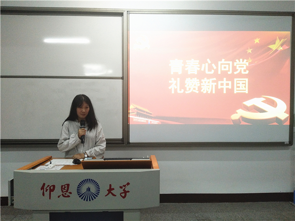 此次学习会以“青春心向党,礼赞新中国”为主题,强调了身为党员要紧跟中国共产党的脚步,矢志学习,为建设中国特色社会主义而奋斗。会上,李小康、俞欣婕等同志分别从“70年光辉历程”和“青年不忘初心跟党走”等方面入手,讲述了作为青年党员应该接过革命的接力棒,牢记我党的宗旨,继续先辈的光荣事业,沿着先辈光荣的足迹,实现中华民族伟大的复兴梦想,做新时代的筑梦者、中国梦的践行者。