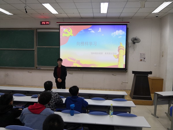 为庆祝中华人民共和国成立70周年,弘扬爱国主义精神,结合党委组织部下发的关于开展“我和我的祖国”主题党日活动的要求,2019年10月17日,新必赢242net官网能动一党支部于东环101召开 “向榜样学习”主题教育活动,支部成员通过此次活动重温历史,感受榜样的力量。此次会议由党支部书记冯文创主持,到会成员为新必赢242net官网能动第一党支部全体学生党员。