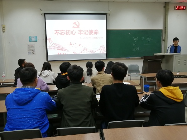 郑红祥首先介绍了“不忘初心、牢记使命”主题教育开展的时代背景。党的十九大报告指出,在全党开展“不忘初心、牢记使命”主题教育,用党的创新理论武装头脑,推动全党更加自觉地为实现新时代党的历史使命不懈奋斗。随后,郑红祥由习近平总书记所讲的“四个迫切需要”切入,告诫大家“为中国人民谋幸福,为中华民族谋复兴”是党的初心和使命,所有共产党员和干部都要增强党性,以共产党的身份和责任去完成党员肩负的使命,并以时间顺序向大家分别介绍了新中国成立以来五代中央领导集体的执政理念。最后,郑红祥希望各位同志在日常生活中能够脚踏实地,以实际行动展现出一名青年人应有的激情,为中国梦的早日实现贡献自己的一份力量。