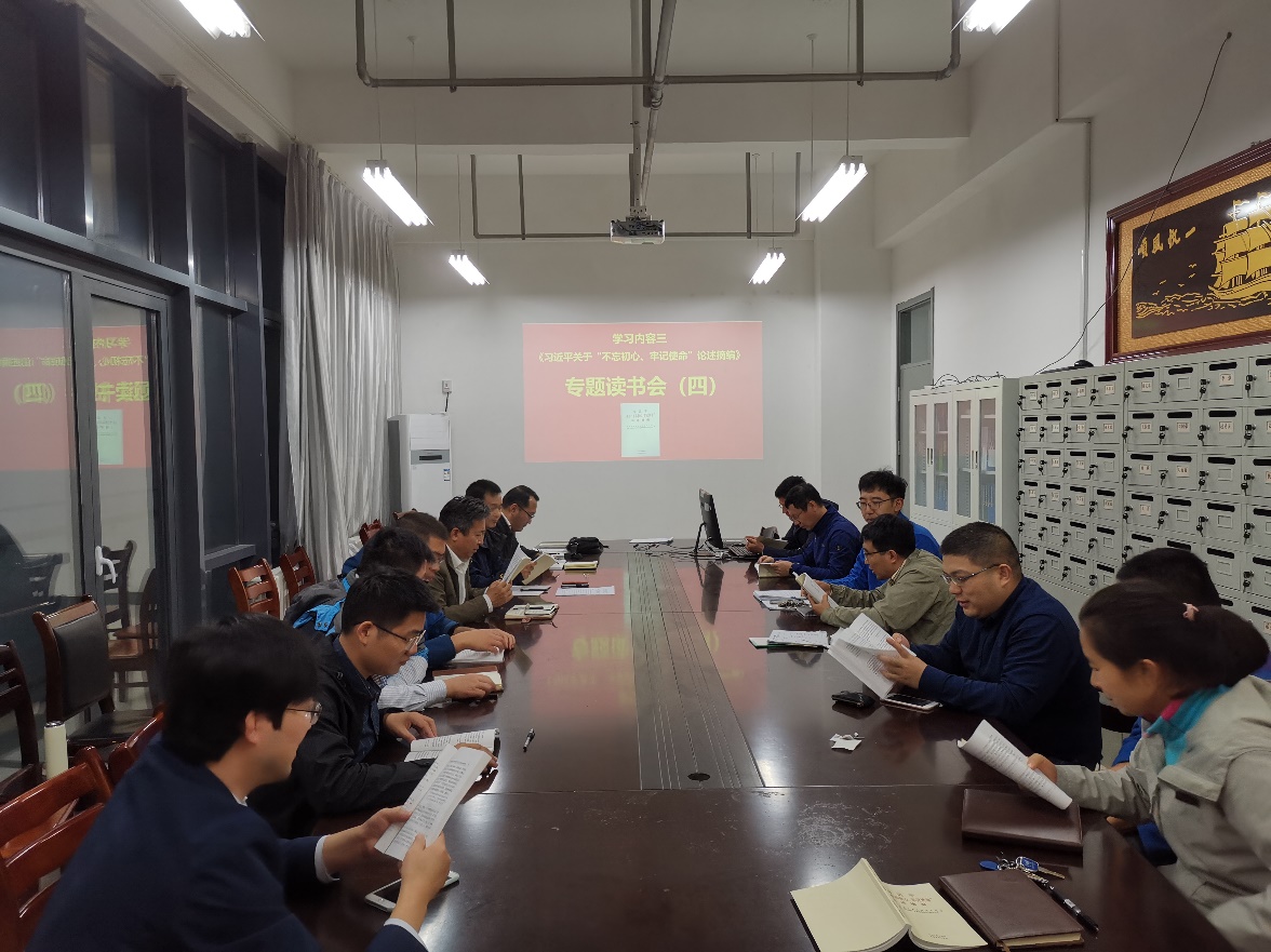 微党课结束后支部开展了例行读书会活动,全体党员共同学习了《习近平关于“不忘初心、牢记使命”论述摘编》第四部分的内容,每名党员依次原原本本、逐字逐句朗读了其中的一部分,并开展集中研讨,交流心得体会。