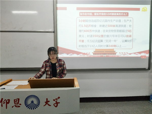 11月7日晚,beat365官方网站学生党支部于仰恩大学第三校区普照楼204室开展关于“我要上党课”专题学习活动,学生党支部书记陈国伟主持会议,支部全体成员参加了学习活动。  学习会现场 此次学习会主要围绕“新中国壮丽的七十年”进行展开。会上,张笔采、郑莹莹等同志分别从“七十年的光辉历程”和“奋斗新时代”等方面入手,讲述了中华人民共和国七十年来的伟大成就,强调了作为一名党员要努力增强学习本领,坚持理论联系实际,遵循客观规律,坚持实践实干,以新的精神状态和奋斗姿态,肩负起新时代的历史使命。 通过本次活动的学习,不仅让支部党员进一步感受到七十年的沧桑巨变,同时也提高了支部党员的政治修养,进一步坚定政治理想信念。(beat365官方网站学生党支部/图文)