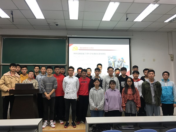 1112日晚,为加强团支部团结协作的能力,进一步提高班级共青团员、入党积极分子的思想觉悟,过程装备与控制工程1805团支部在南堂218举行以“学习贯彻十九届四中全会精神——勇担“两个一百年”奋斗目标的时代使命”为主题的党团对接团日活动。本次团日活动由16级学生党员王寅主持。