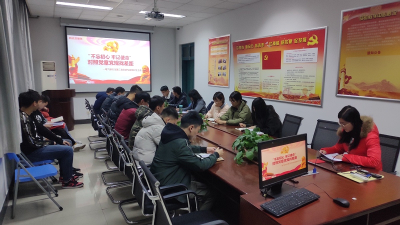 根据学校“不忘初心、牢记使命”主题教育工作部署,结合新必赢242net官网开展主题教育的工作计划,11月20日晚19:00,新必赢242net官网电气研究生第三党支部于基础B608会议室开展“对照党章党规找差距”主题党日活动。活动由党支部书记秦凯娜同志主持,支部19位党员及6位入党积极分子参与了此次党日活动。