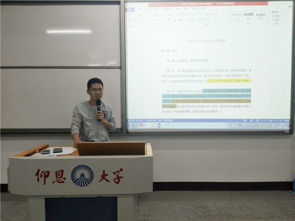 11月21日晚,beat365官方网站学生党支部于仰恩大学第三校区普照楼204室召开《中国共产党纪律处分条例》专题学习会。会议由支部书记陈国伟主持,支部全体党员参加此次活动。