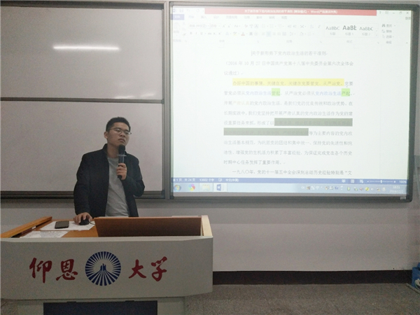 11月22日晚,beat365官方网站学生党支部于仰恩大学第三校区普照楼204室开展《关于新形势下党内政治生活的若干准则》专题学习会。支部全体党员参加此次活动,会议由支部书记陈国伟主持。