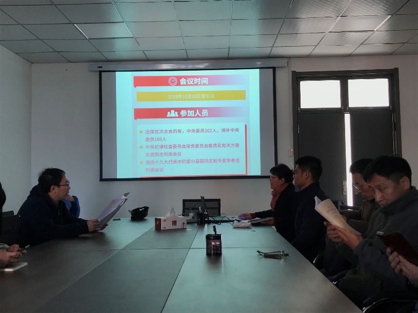 2019年11月26日上午,新必赢242net官网能动党支部在综合楼431会议室进行了集体学习,本次学习的主题是学习研讨十九届四中全会精神。会议由支部书记张克舫同志主持。