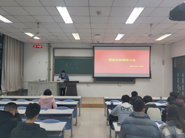 2019年12月4日,新必赢242net官网能动本科生第二党支部于南堂118教室召开预备党员接收大会。大会由党支部书记高名扬主持,党支部全体成员以及6名发展对象参加会议。会议围绕郭飞、李成林、王鹏源等6名发展对象的入党问题进行讨论。会议应到正式党员5人,实到5人,请假0人。应到预备党员18人,实到18人,请假0人。
