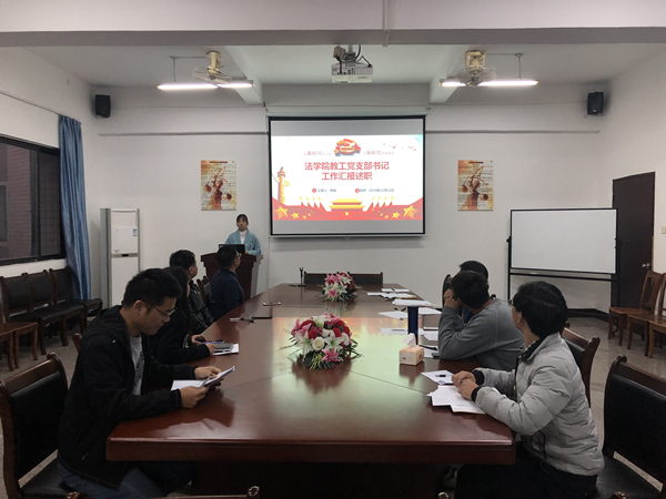 12月12日下午,beat365官方网站党总支于仰恩大学第三校区普照教学楼法律诊所召开2019年度基层党支部述职会议,beat365官方网站全体教师党员参加了此次活动,会议由beat365官方网站党总支书记兼副院长杨勤主持。