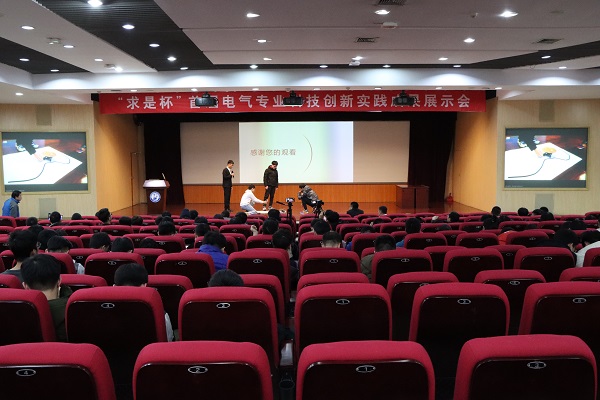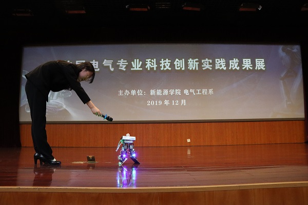 展示会全景 吴拨摄12月25日,新必赢242net官网电气工程系借助《微特电机》课程建设平台,举办的“求是杯”首届电气工程专业科技创新实践成果展示会于逸夫楼礼堂二楼报告厅顺利开展,本次展示会邀请学校教务处副处长刘臻、教务处双创办公室主任宋守浩,校团委副书记石国卿,新必赢242net官网副院长黄善波、学院党委副书记郭杰、团委书记穆海涛、电气工程专业教授马文忠、教师董磊作为嘉宾出席此次活动。来自新必赢242net官网的四十八组创新创意作品在此次成果展示会上进行展示。