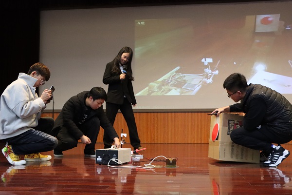 本次展示会分为两个部分进行展开。首先,此次展示会采取“创新达人秀”的模式,由各参赛队伍依次进行科技创新实践成果答辩及进行成果展示。答辩限时四分钟,各参赛队伍答辩人通过对团队成员介绍,作品设计背景、设计原理、功能演示等方面进行成果展示。随后,比赛评委与大众评审参考各参赛作品的综合表现,对各参赛队伍依次打分,对获奖作品进行颁奖并合影留念。此次比赛由来自电气专业的四十八队伍参加,基于《微特电机》课程设计,制作出基于微特电机原理的比赛作品并参与答辩,比赛综合专业评委打分与在场参赛选手打分,最终决出一等奖一组,二等奖两组,三等奖三组。此外,本次展示会另设抽奖环节,由郭杰等三个嘉宾依次抽取标记球,抽选一名学生获得精美礼品一份。董磊在谈到此次展示会的意义时讲到:“此次展示会展现了电气学子的风采,无论从答辩人的仪容仪表,还是参赛作品的呈现效果,都得到了老师们的肯定。”