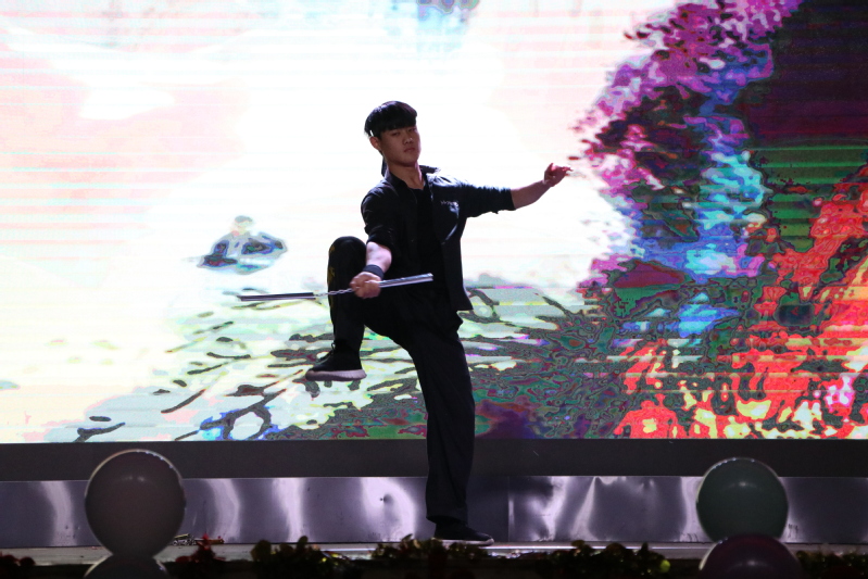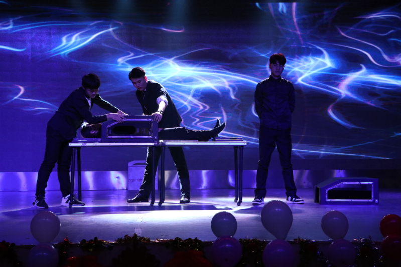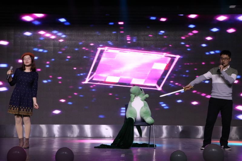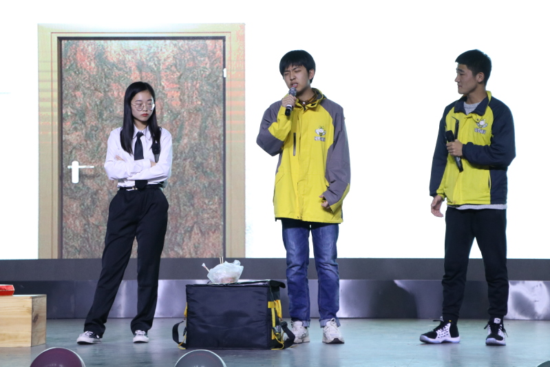 元旦晚会节目共分为流芳岁月、良辰锦时、美好远憬三个篇章,寓意新年新气象,新年新起点。晚会在开场舞节目——《舞耀青春》的青春活力中拉开帷幕,歌舞、情景剧、舞台剧、魔术等异彩纷呈的节目为新必赢242net官网全体师生献上了一场视听盛宴。“流芳岁月”篇,《回 || 望》歌曲串烧,一“回”一“望”寓意继往开来,承上启下的必赢官网师生,小品《当外卖来敲门》则反映当下外卖小哥生活工作现状,舞狮、双节棍、武术等中华传统艺术也在《中华精魂》中得到淋漓尽致的表演,歌曲《达拉崩吧》也融入二次元元素。