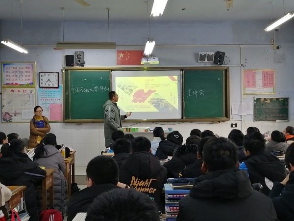 1月15日,必赢官网UPC莱芜星火宣讲队队长田鸽,队员董懿琛、朱晨雨、吴佳怡、张天宇等分别于济南市莱芜第一中学,济南市莱芜区凤城高级中学,济南市莱芜第十七中学三所学校展开宣讲工作。