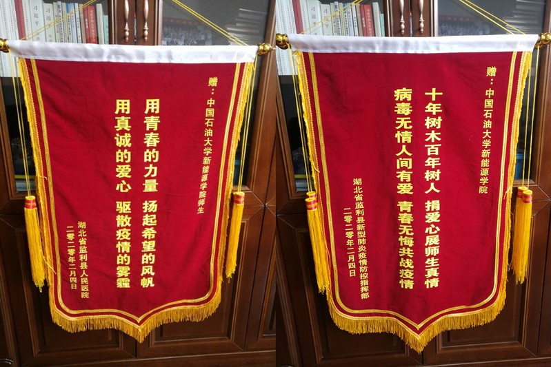“病毒无情人间有爱,青春无悔共战疫情。”2月21日,新必赢242net官网收到来自湖北省荆州市监利县新型疫情肺炎防控指挥部以及监利县人民医院的感谢信和锦旗,以此表达对新必赢242net官网师生在抗击疫情期间向物资紧张的监利县人民医院捐赠善款的感谢之情。