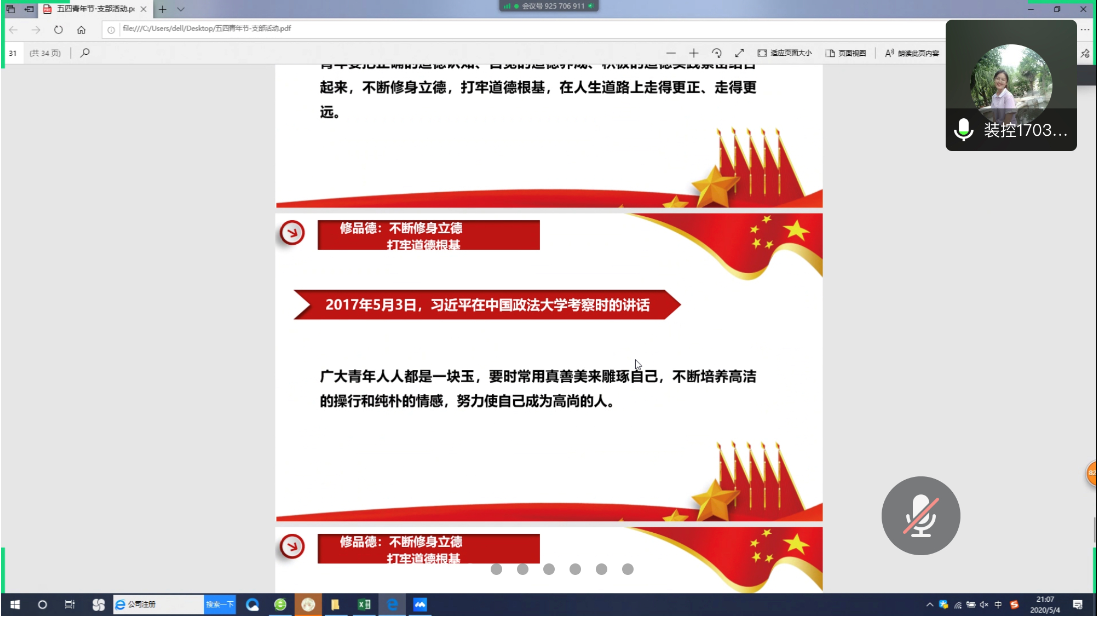 青春飞扬,唱响爱国旋律,热血满怀,砥砺强国之志,为激励和引领广大青年时刻牢记习近平总书记嘱托,继承和发扬五四精神,坚定理想信念,站稳人民立场,练就过硬本领,投身强国伟业,2020年5月4日,必赢官网学生会党支部在支部书记宋永娟的主持下开展五四青年节主题学习活动,支部全体成员参与本次会议。