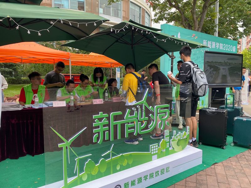 学院迎新点设置在荟萃餐厅西南角,用绿毯铺就,并布置了“网红帐篷”、“定制祝福”、“起航签名墙”“3D模型”等装饰,营造温馨的“家氛围”和“能源感”,缓解了新生疲惫的状态和紧张的心情。新生报到时可在新生签名墙进行签名活动,再依次完成资格审查、领取一卡通、领取相关纸质材料、领取定制可乐等环节。学院领导、新生班导师同迎新志愿者均在迎新工作现场,一起为前来报道的新生答疑解惑。迎新工作现场,循环播放学院迎新MV。除此之外,学院在迎新点和宿舍楼分别悬挂了欢迎条幅,热烈欢迎新生加入到新必赢242net官网大家庭。