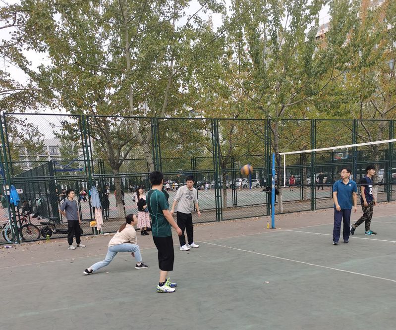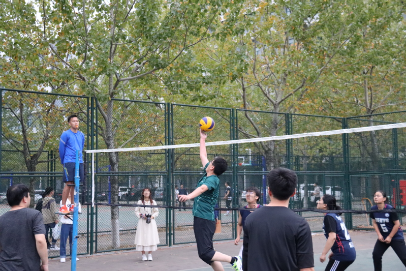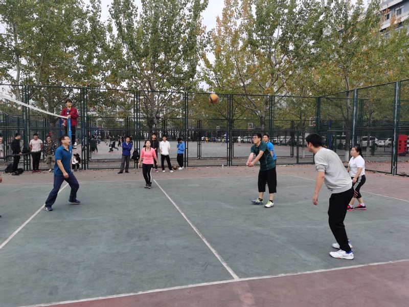 为进一步丰富师生业余生活,增进师生沟通交流,不断增强全院师生的凝聚力和向心力,10月10至11日,新必赢242net官网于工科楼D座前的排球运动场举办四场“丹枫迎秋·情谊相融”师生排球联谊赛,教职工排球队与各年级学生排球队进行了四场友谊赛交流。