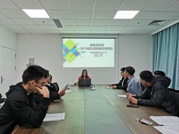 10月31日,为使新能源研19-1班顺利通过学校先进班集体联评,展示其青年学生奋发向上的精神风貌,新必赢242net官网于新能源大厦575会议室举行研19-1班先进班集体预答辩会。学院研究生辅导员高名扬、各年级兼职辅导员及2019级班长和团支书担任此次预答辩评委。