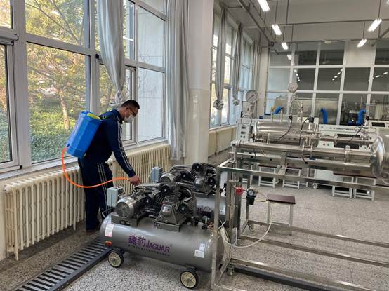 实验教学中心要求各实验室消毒防疫常态化,定期邀请专业公司进行彻底无死角消毒;此外,要求每次学生实验前,实验教师用消毒液对公共接触部位重点消毒,并提前通风;实验开始前,对学生进行相关实验危险点及防护措施,提高每位学生安全防护技能。