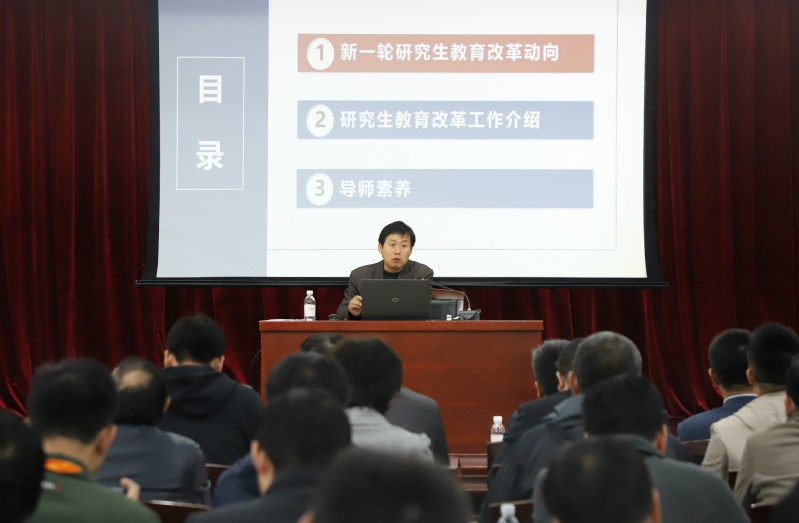 康忠健作题为《研究生教育改革与导师素养》的报告,从新一轮研究生教育改革动向、研究生教育改革工作介绍、导师素养三个方面,讲解在国家研究生教育改革的背景下对研究生培养的具体要求,并提出新形势下导师的角色——学术生涯的引路人、品格修养的引导者、科研训练的教练。