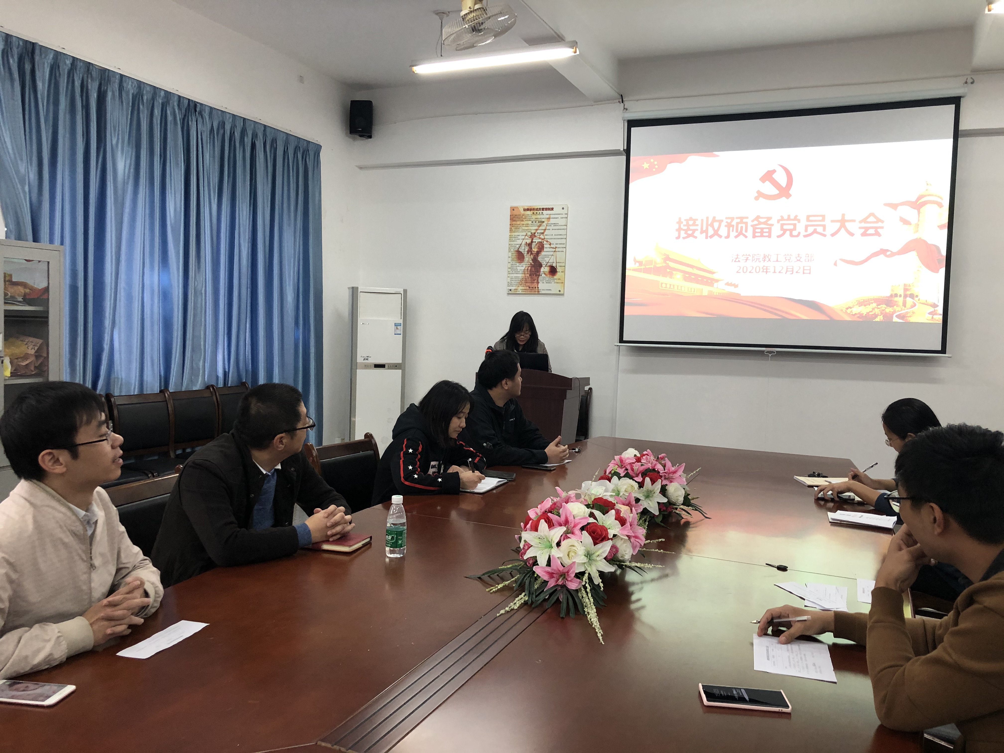 12月2日下午,beat365官方网站教工党支部在仰恩大学第三教学区普照楼214室法律诊所召开党员大会,本次大会的内容是对发展对象黄晓娟同志的入党事宜进行讨论和表决,支部党员及发展对象参加了本次会议,会议由支部书记林媛同志主持。