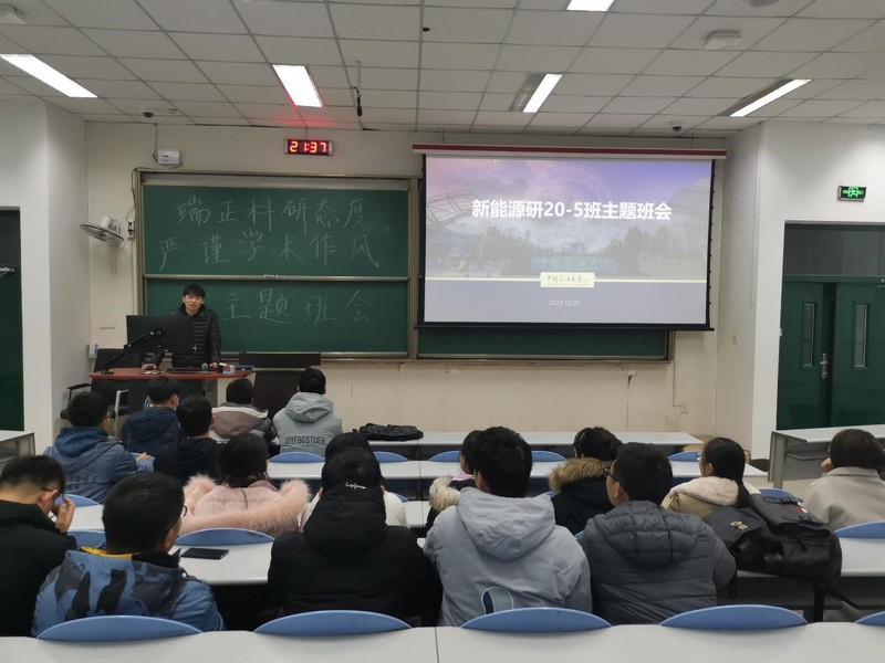 新能源研20-2班于12月4日在南堂218教室召开了“惟真惟实”主题班会。班长刘佳萱先指明了学术道德与学术规范的重要性,介绍了学术道德的基本内涵,深度解读了我校校训“惟真惟实”的深刻含义并指出当前存在的七种学术不端行为。通过观看学术造假相关视频,引发学生对于科研精神和学术道德的深度思考。新能源研20-5班于12月3日在西环204开展“端正科研态度,严谨学术作风”主题班会。班长王青阳讲解了学术道德与学术规范的基本知识,通过举出学术不端的行为,与学生共同探讨学术不端行为的影响,告诫研究生们学术造假的严重后果,强调尊重他人学术成果的重要性,引人深思。班会最后,与会人员围绕目前存在的学术道德失范现象展开了热烈的讨论,纷纷表示要做严谨治学、实事求是的研究生。