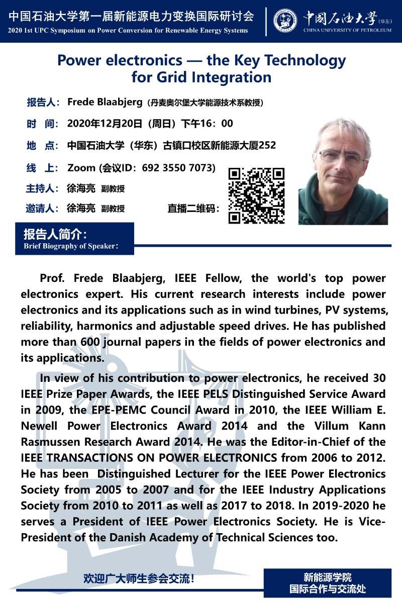 第一届新能源电力变换国际研讨会之“电力电子”专题讲座通知