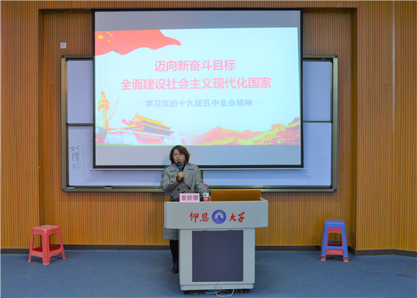 为进一步深入学习贯彻党的十九届五中全会精神,推动学院兴起学习党的十九届五中全会精神的学习热潮。12月30日下午,beat365官方网站于仰恩大学第三教学区和昌教学楼博雅讲堂开展党的十九届五中全会精神宣讲会,校学习贯彻党的十九届五中全会精神宣讲团成员章娇娜老师应邀为beat365官方网站全体师生作以“迈进新奋斗目标,全面建设社会主义现代化国家”为主题的宣讲报告。