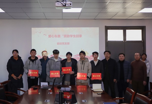 为积极响应党和国家“助力贫困学生”的号召,减轻贫困学子家庭负担,1月8日上午,新必赢242net官网能源与动力工程系党支部在特种楼C433会议室举办2021年“爱心车票”发放仪式,为学生们送去冬日的温暖和新年的问候。学院党委书记冯宝鹏,副院长黄善波、蒋文春,能动系教工党支部全体成员以及2020级辅导员郭晓静出席仪式,能动系教工党支部书记张克舫主持。