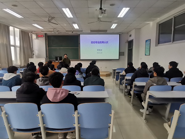 在本次班会中,黄善波主要从四个方面进行了讲解,分别为:能动专业的历史沿革,对能动专业的再认识,我校的能动专业,对大家的期望。黄善波从能动专业的理由由来入手,指出了国家压缩课程学时的整体趋势,意在告诉学生现在筛选出的必修课都是非常重要的。在学校中的专业课程排名中,能源与动力工程也能占有一席之地。黄善波指出能源与动力工程在学校专业评比中被评为“B”级,同时也多次评选为国家级一流本科专业。这增强了学生对于自身专业的信心,加深了对于能动专业的认识。在“对大家的期望”板块中,黄善波送给学生们一句话“不要人为地制造‘专业枷锁’,要么禁锢自己,要么放纵自己。”黄善波告诉学生们不要拘泥于自己的专业,而应该放开眼界,在学好自身专业的同时去进一步培养自己的能力。