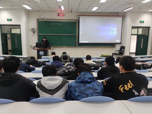 班会伊始,高学武总结了上学期班级工作的开展情况以及班级成绩情况,并对新学期学生的学习提出新的期待。高学武首先肯定班级上学期取得的优秀成绩,表扬学生学习的积极性,其次对未来班级的工作进行相关安排。随后,刘汉卿为学生介绍大家普遍关心的考研和就业问题。主要分为以下几个方面:第一点,为大家解读保研政策与流程,分享自己保研过程中积累的经验。对学生进行鼓励,鼓励大家对考研早做准备。第二点,为大家讲述就业行情,对就业单位前景这一大家普遍关注问题进行细致解释。并通过几个具体实例来加深学生的理解。第三点,分析大家目前的学习情况,对暂时存在需要补考,重修课程的同学进行了鼓励指导。第四点,对大家说明,学业重要,但健康更重要,尤其强调了心理健康。叮嘱大家要时刻关注自己以及同学的心理状态,要学会调整自己的心情,如果遇到解决不了的心理问题,可以及时与同学师长倾诉或拨打学校心理热线,寻求帮助。最后,团支书孙清华、组织委员梁峰瑚、宣传委员王一帆、生活委员杨林分别总结了上学期的工作情况和对本学期工作的规划。