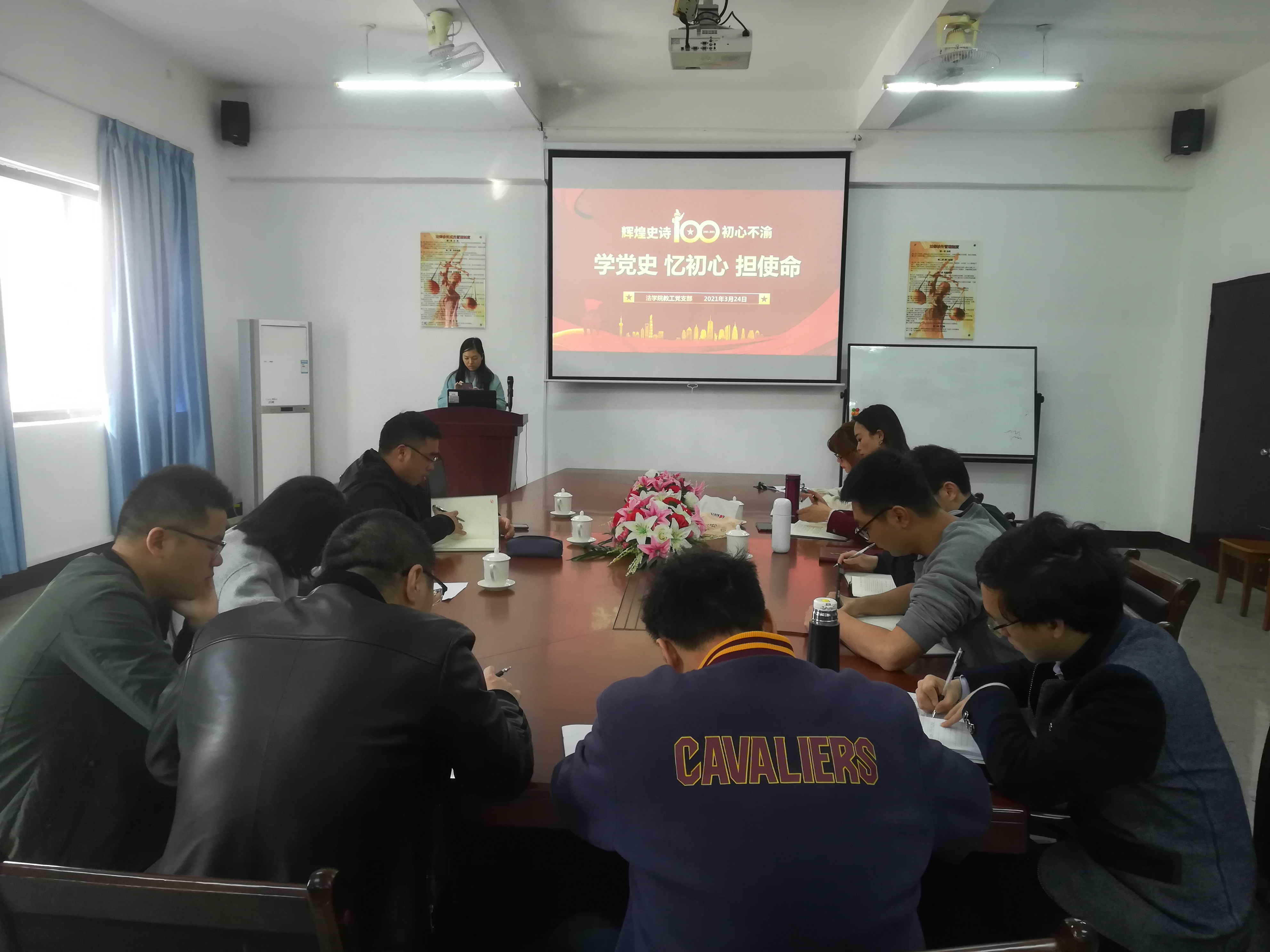 为强化思想政治教育,巩固拓展“不忘初心、牢记使命”主题教育成果。3月24日下午,beat365官方网站教工党支部于仰恩大学第三校区普照教学楼法律诊所召开“学党史、忆初心、担使命”主题活动,beat365官方网站全体党员教师参加了此次活动。