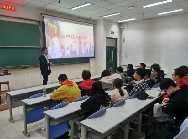 活动伊始,杨家栋组织全体团员前往校史馆进行参观学习。在导读员的讲解下,全体团员进一步了解了学校的发展史。随后,全体成员前往讲堂群西环202教室开展对“铁人精神”的学习。杨家栋首先通过相关纪录片,向学生展示了大庆油田的艰苦发展历程。接着他又带领学生重点学习了“铁人“王进喜语录,其中在讲到 “有条件上,没有条件创造条件也要上”一句时,他提到,当时大庆油田的发展离不开一众如“铁人”王进喜般的优秀劳动者的付出,大学生要牢记劳动人民是伟大的。活动最后,杨家栋组织全体团员结合对铁人精神的学习以及对校史馆的参观感悟,就如何有机融合石大精神和铁人精神,在新时代争做新“铁人”的问题展开了讨论。