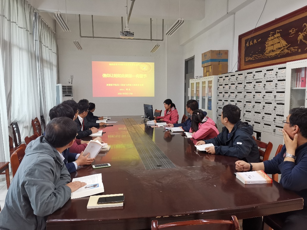 5月13日下午在工科楼E411,装控系党支部开展本学期第六期的党史学习教育,活动由支部书记左海强主持。首先开展了“读原著·悟思想”专题读书会活动,党员依次接力朗读党史学习教育指定教材《中国共产党简史》第六章:社会主义建设的探索和曲折发展。通过阅读党员同志们重温了中国历史上一个新的全面的大规模的社会主义建设时期,了解了党的八大和中国社会主义建设的良好开端,社会主义道路的艰辛探索,以及社会主义建设在曲折中发展。