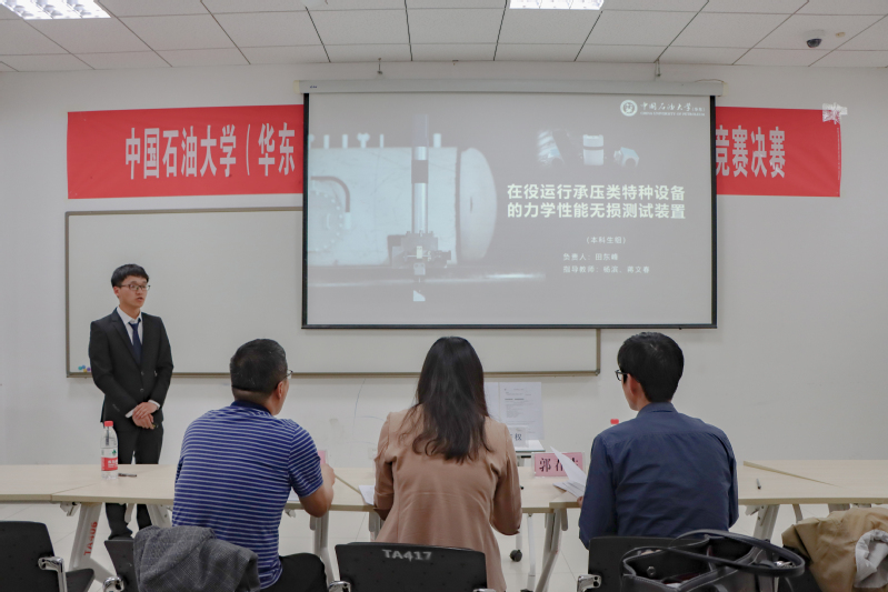 为培养新时期大学生节能减排意识和科技创新能力,做好全国大学生节能减排社会实践与科技竞赛项目推荐工作,5月17日,由新必赢242net官网能源与动力工程专业主办,新必赢242net官网团委承办的“中国石油大学(华东)第十二届大学生节能减排社会实践与科技竞赛(决赛)”在综合楼A421室举行。本次比赛特邀山东大学教授郭春生、中国海洋大学教授李艳和青岛大学教授王德昌作为决赛评委,对进入决赛的节能减排项目进行点评。竞赛由新能源研究院副院长巩亮主持。
