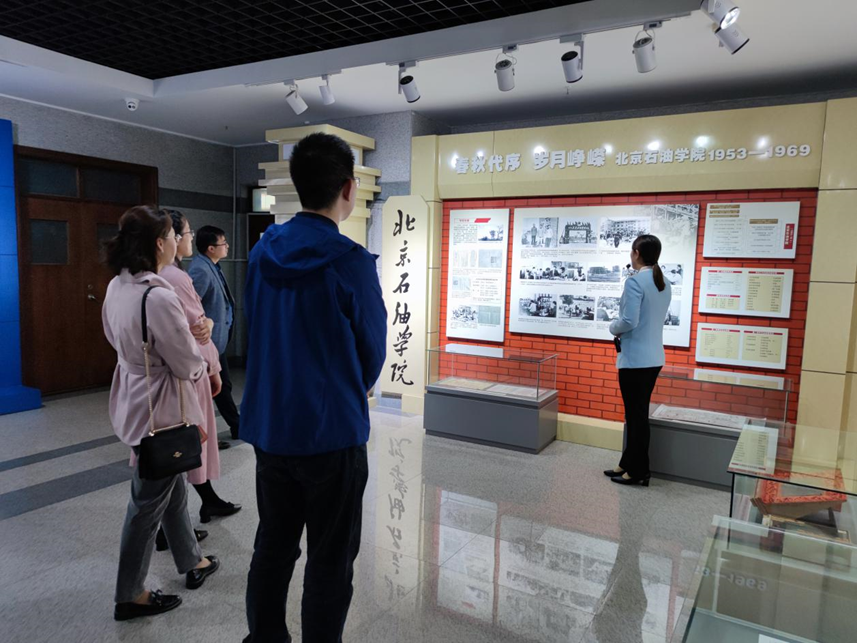 实验中心全体党员首先参观了校史展览馆,在讲解员的讲解下,重温了建校六十多年来的历史沿革,学校从“春秋代序,岁月峥嵘”的北京石油学院时期,到当下“海纳百川,扬帆远航”的中国石油大学(华东)时期,四易校名、三地办学,这种经历种种坎坷磨砺又自强不息、发展治学的精神鼓舞了在场的每位党员。