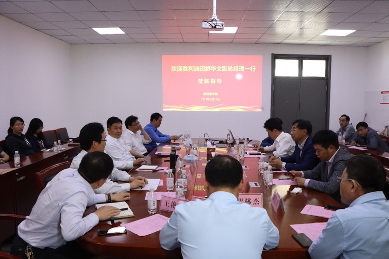 5月22日,胜利石油管理局有限公司党委常委、副总经理、东营市副市长舒华文一行来访必赢官网,就加强胜利油田与学院新能源方向的全面合作进行深入交流,胜利油田首席高级专家倪承波、胜利油田电力公司经理刘玉林、胜利油田新能源开发中心经理李景营、胜利油田组织部赵庆伟主任,森诺科技董事长姜传胜、森诺科技人力资源部经理姜晓健,新必赢242net官网党委书记冯宝鹏、常务副院长吴明铂、副院长蒋文春、副院长康忠健,智林杰教授、王艳松教授以及新能源方向相关教师参与交流会。