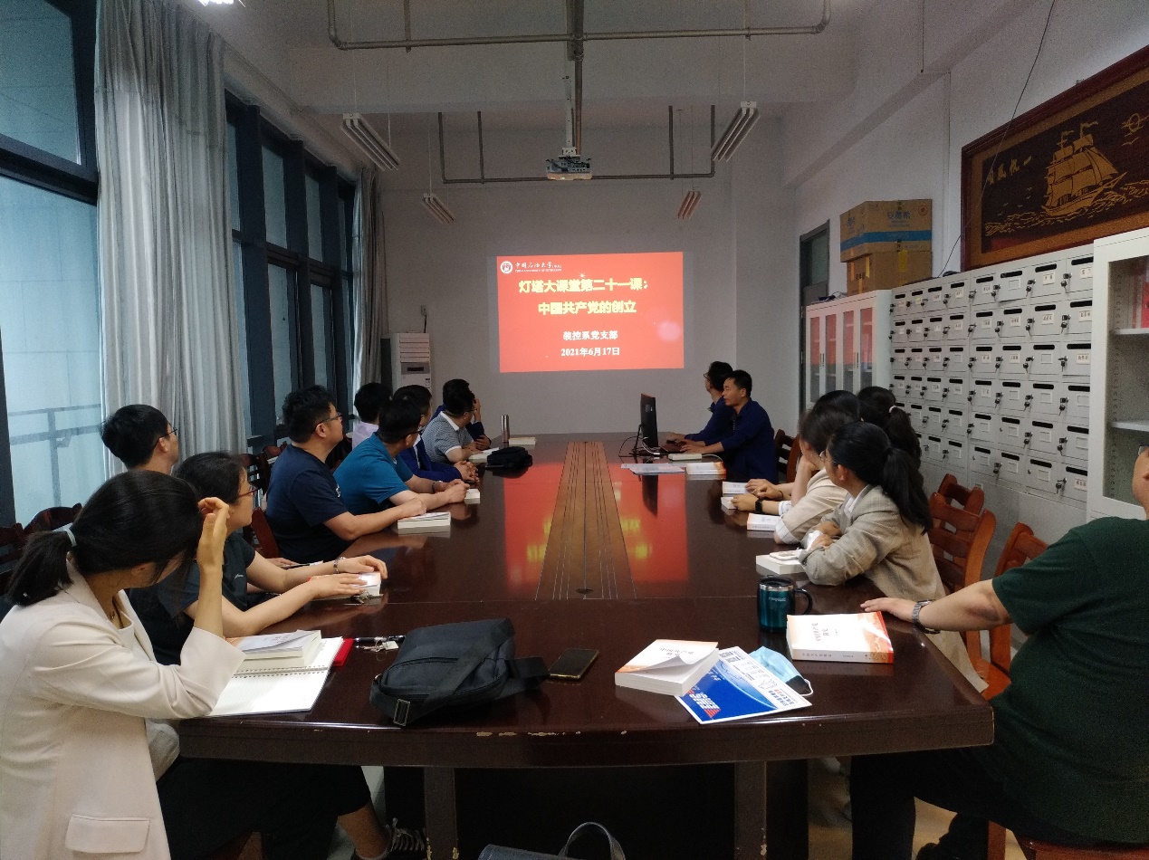 接下来,支部全体成员通过灯塔党建在线以视频的形式共同学习了灯塔大课堂第二十一课《中国共产党的创立》。通过课程学习,党员同志们回顾了中国共产党团结带领中国人民不懈奋斗的光辉历程,了解到中国共产党诞生背后反映的近代中国社会及人民革命斗争发展的必然趋势,深刻认识到红色政权来之不易,新中国来之不易,中国特色社会主义来之不易,自觉继承革命传统、传承红色基因、补足精神之钙。