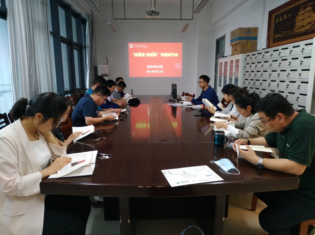 617日下午在工科楼E411,装控系党支部开展本学期第十期的党史学习教育,活动由支部书记左海强主持。首先开展了“读原著·悟思想”专题读书会活动,党员依次接力朗读党史学习教育指定教材《中国共产党简史》第十章:中国特色社会主义进入新时代。通过阅读党员同志们回顾了党的十八大、十九大以来在习近平新时代中国特色社会主义思想指引下,全党全国各族人民全面建成小康社会,开启全面建设社会主义现代化国家新征程。